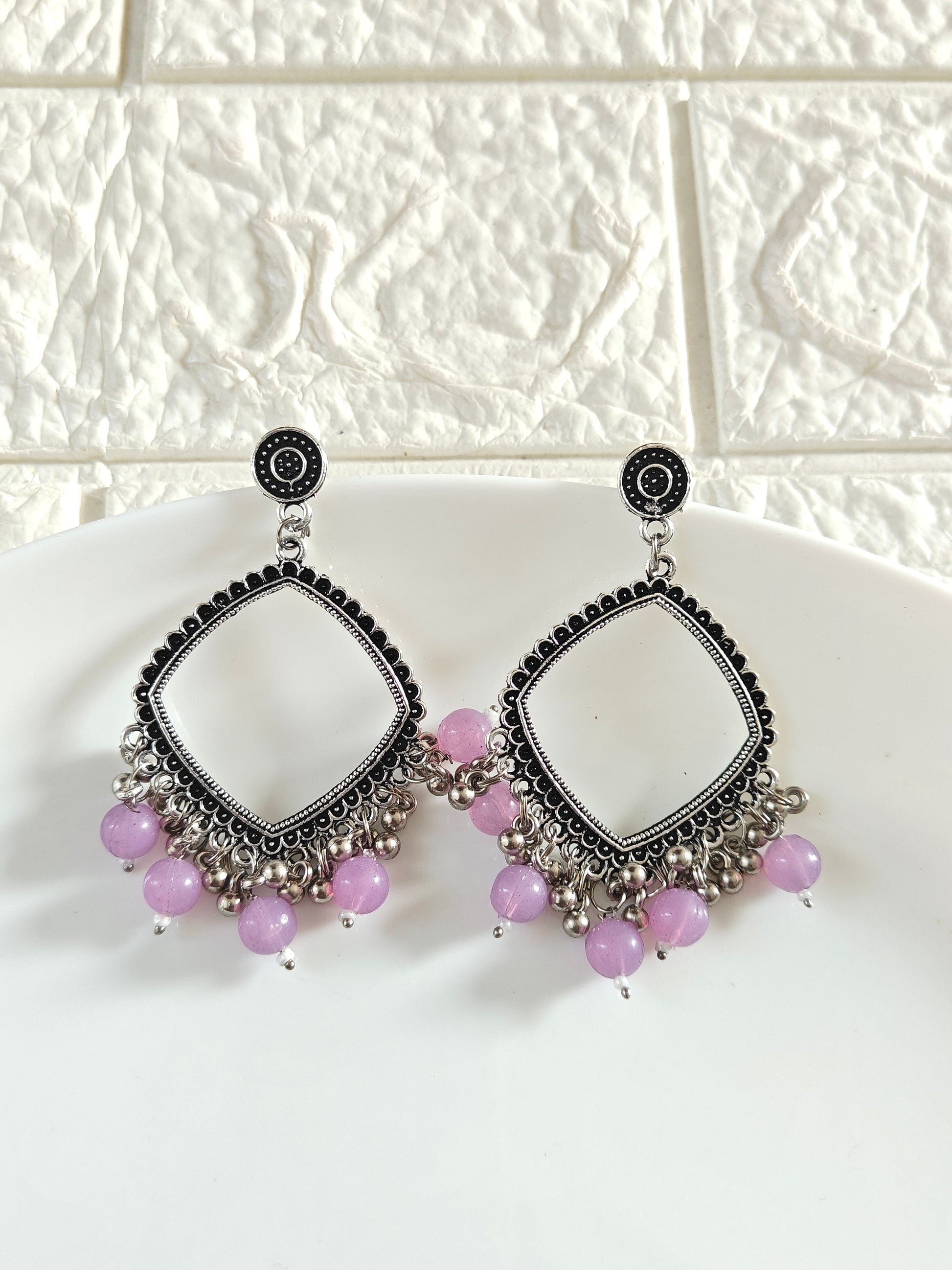 Silver Square Lavendar Beaded Jhumka Base - 1 Pair